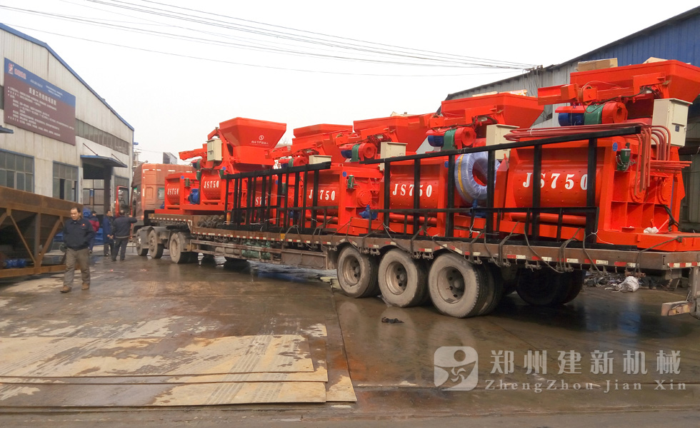 2015年12月1日,6臺(tái)JS750強(qiáng)制式混凝土攪拌機(jī)在鄭州建新機(jī)械廠家完成裝車,發(fā)往河南周口。